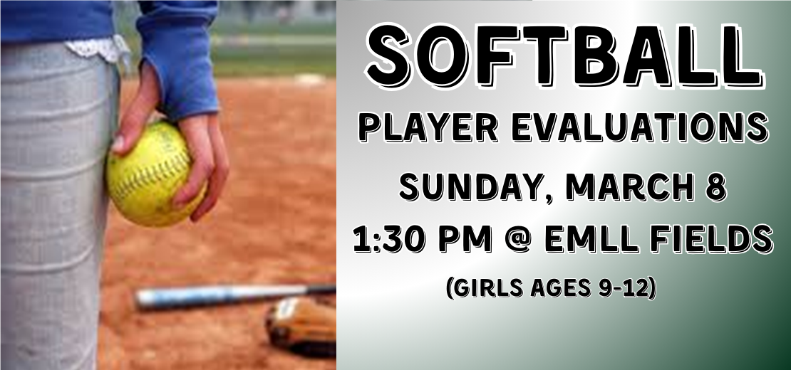 Softball Player Evaluations have been rescheduled for Sunday, March 16 at 1pm.